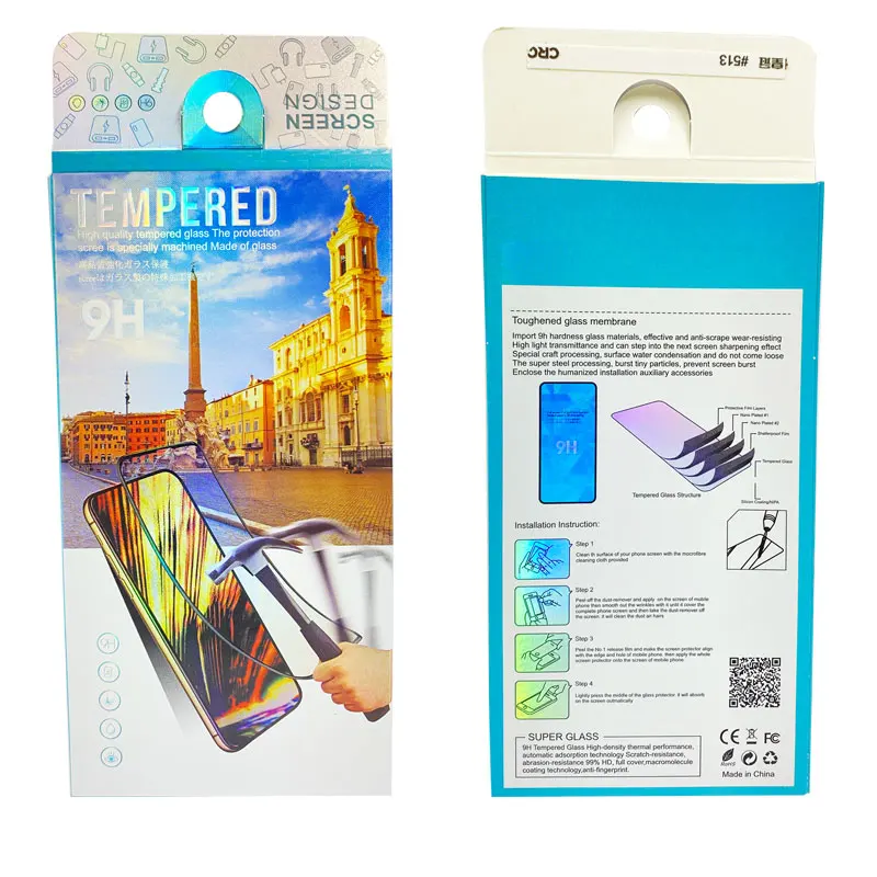 Wholesale Custom Design Tempered Glass Screen Protector Packaging Paper Box with Matt Lamination & Embossing for Business